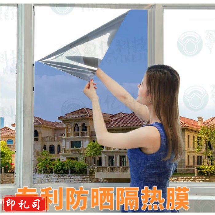 专利膜 遮光防晒隔热膜 单向透视玻璃贴膜 家用反光不透光遮阳太阳膜窗户贴纸 2022专利款风光蓝90*500cm防晒隔热膜46