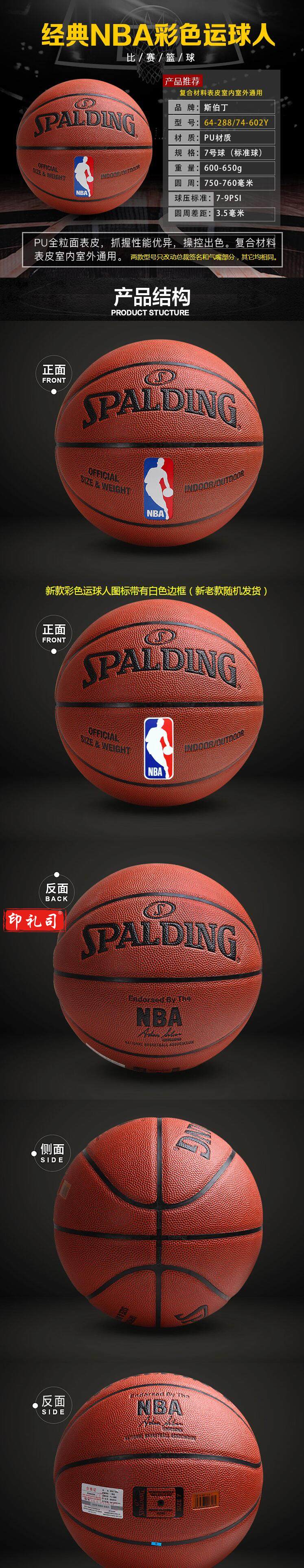 斯伯丁 74-602篮球 NBA彩色运球人经典比赛PU蓝球