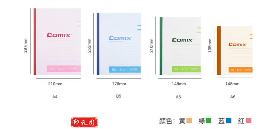 齐心(Comix)A5/80张无线装订软抄本笔记本子/办公记事本学生本子 6本装