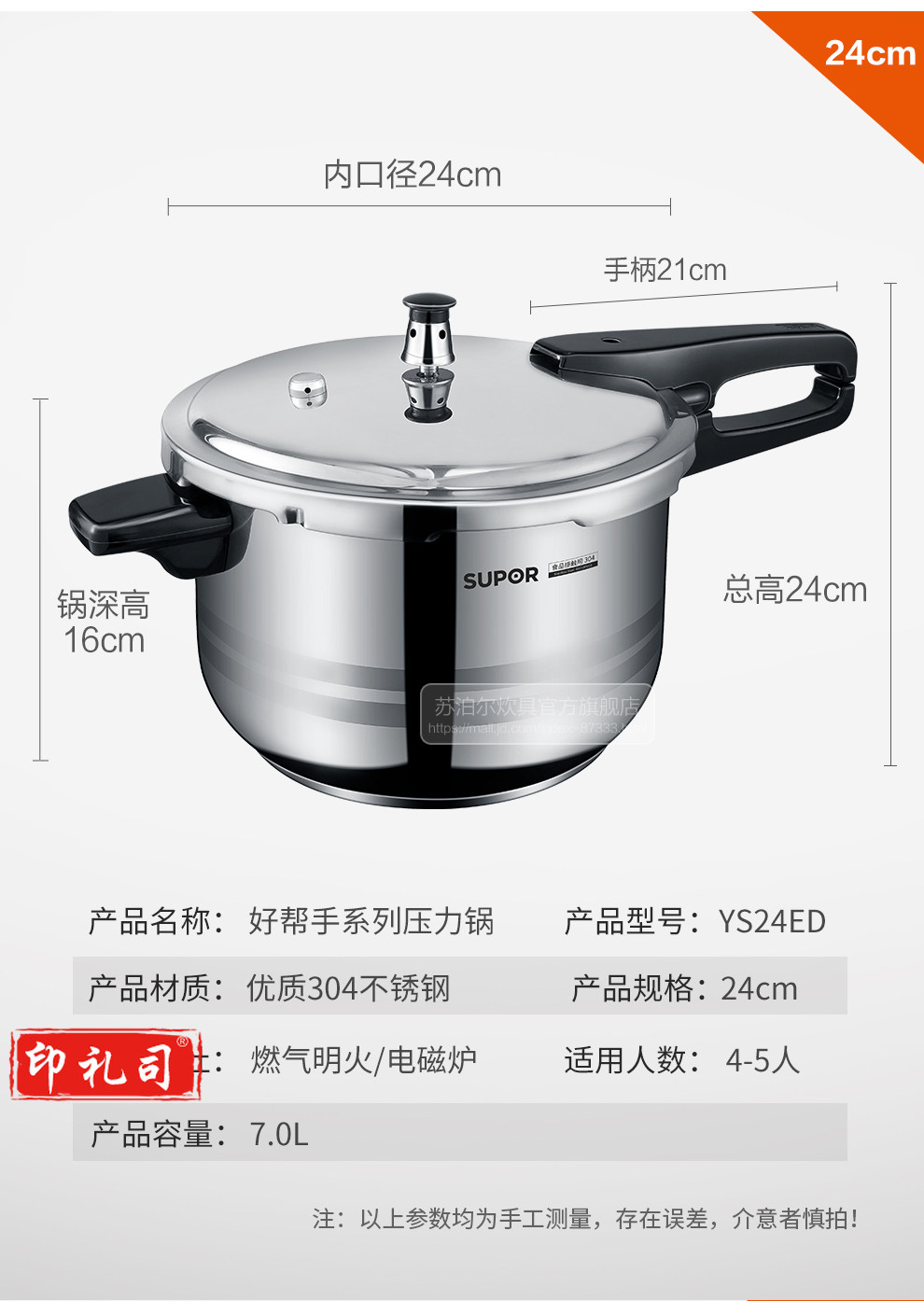 苏泊尔YS24ED 好帮手不锈钢压力锅 24cm