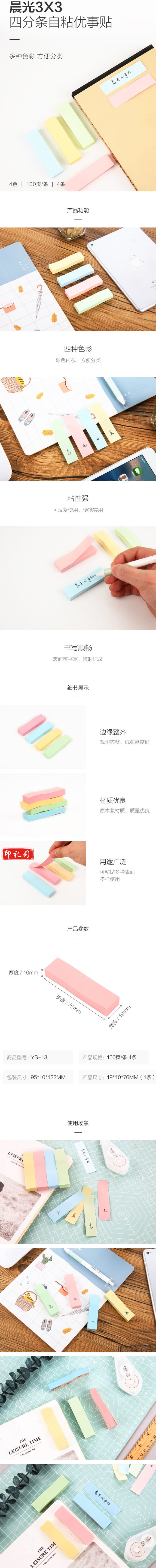 晨光YS-13 10页4色便利贴 粘性标签贴姓名贴 记事留言贴优事贴便签本子4条装