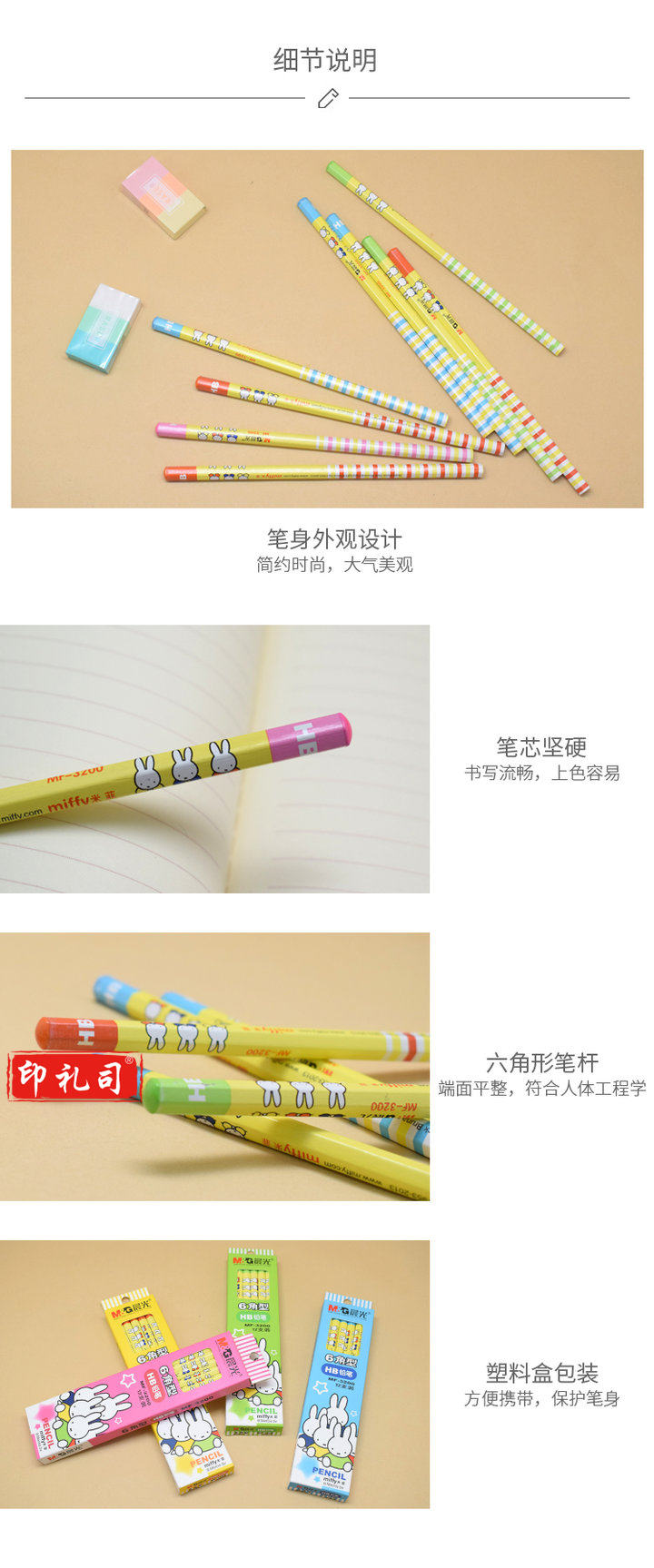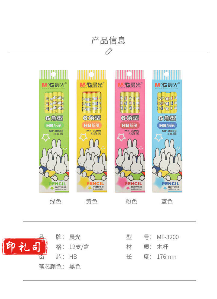 晨光铅笔米菲六角热转印沾顶MF3200