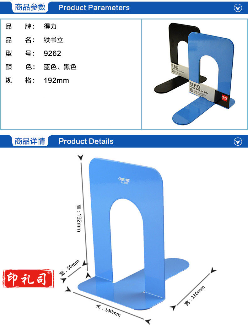 得力 9262 铁书立 7.5寸 2片/付 (单位:付)