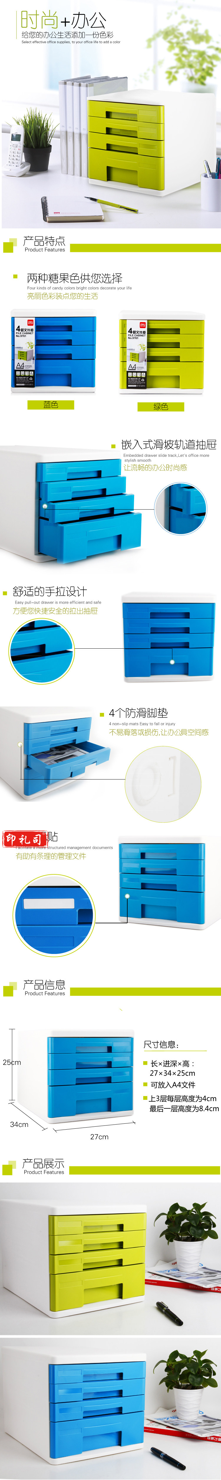 得力 9761 时尚彩色办公四层文件/资料收纳 蓝色