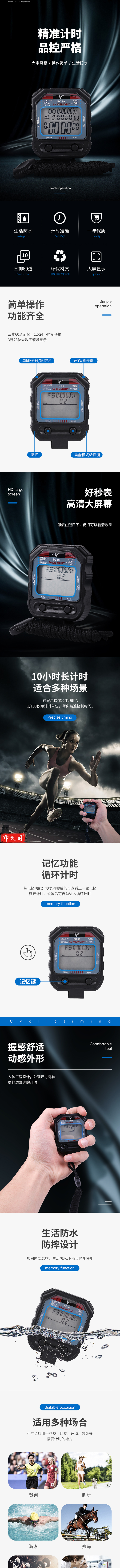 天福秒表 PC90三排60道 裁判计时器多功能厨房闹钟 防滑电子表运动比赛田径跑步训练