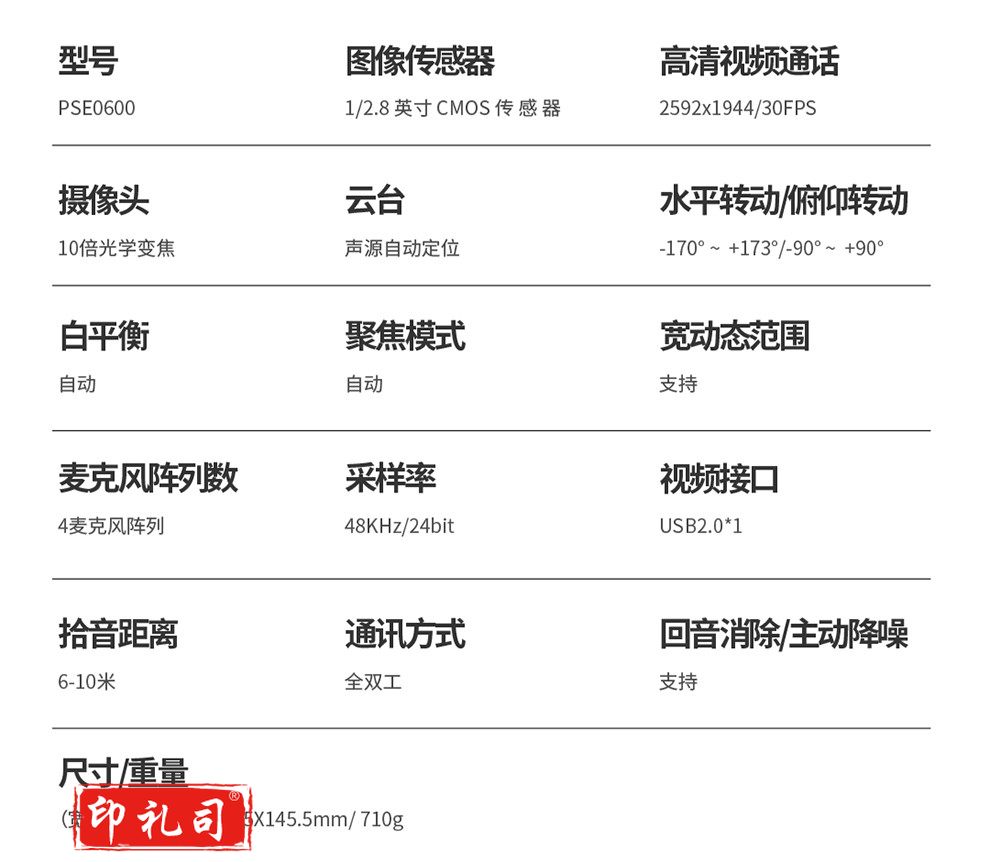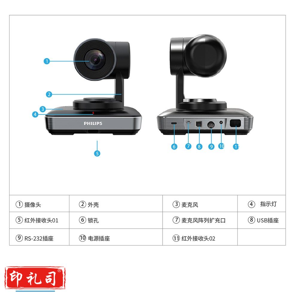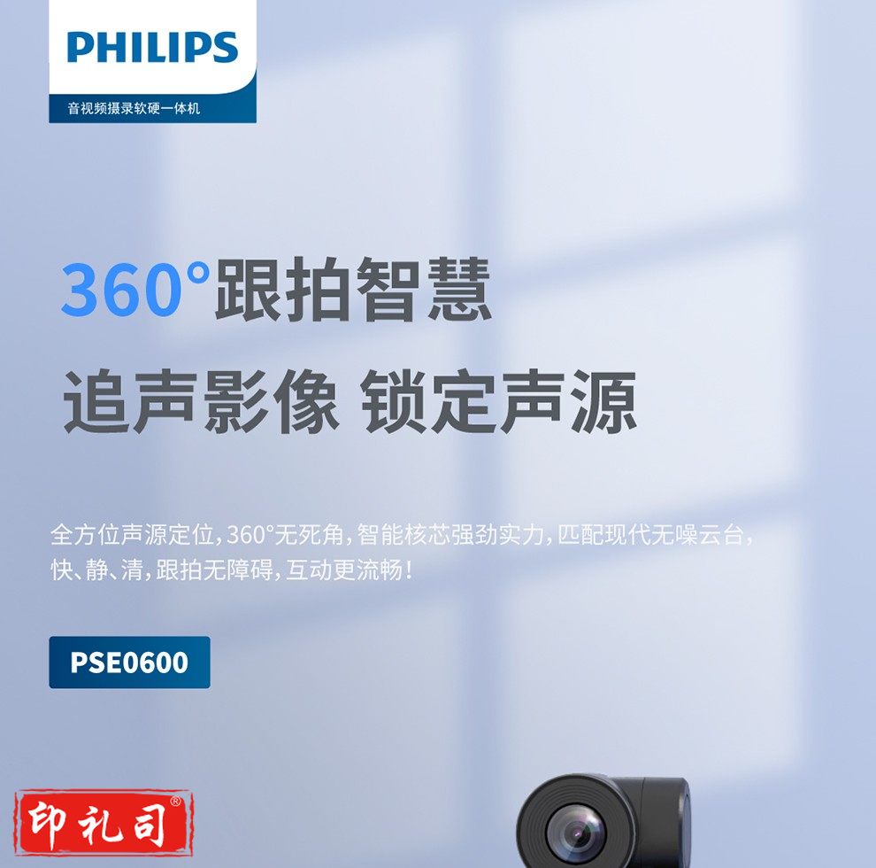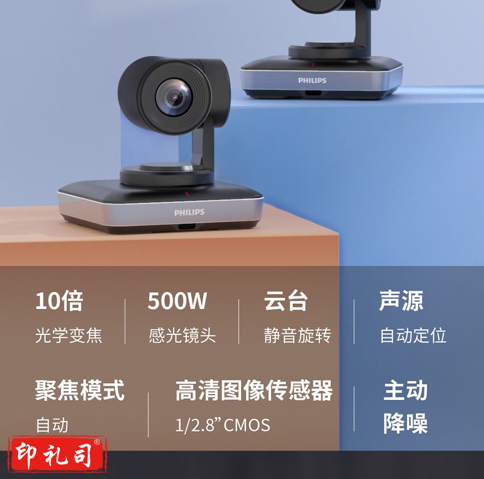 飞利浦PSE0600 远程视频会议摄像头 直播录播会议摄像机 10倍光学变焦 360°云台声源定位 内置10米收音麦克风