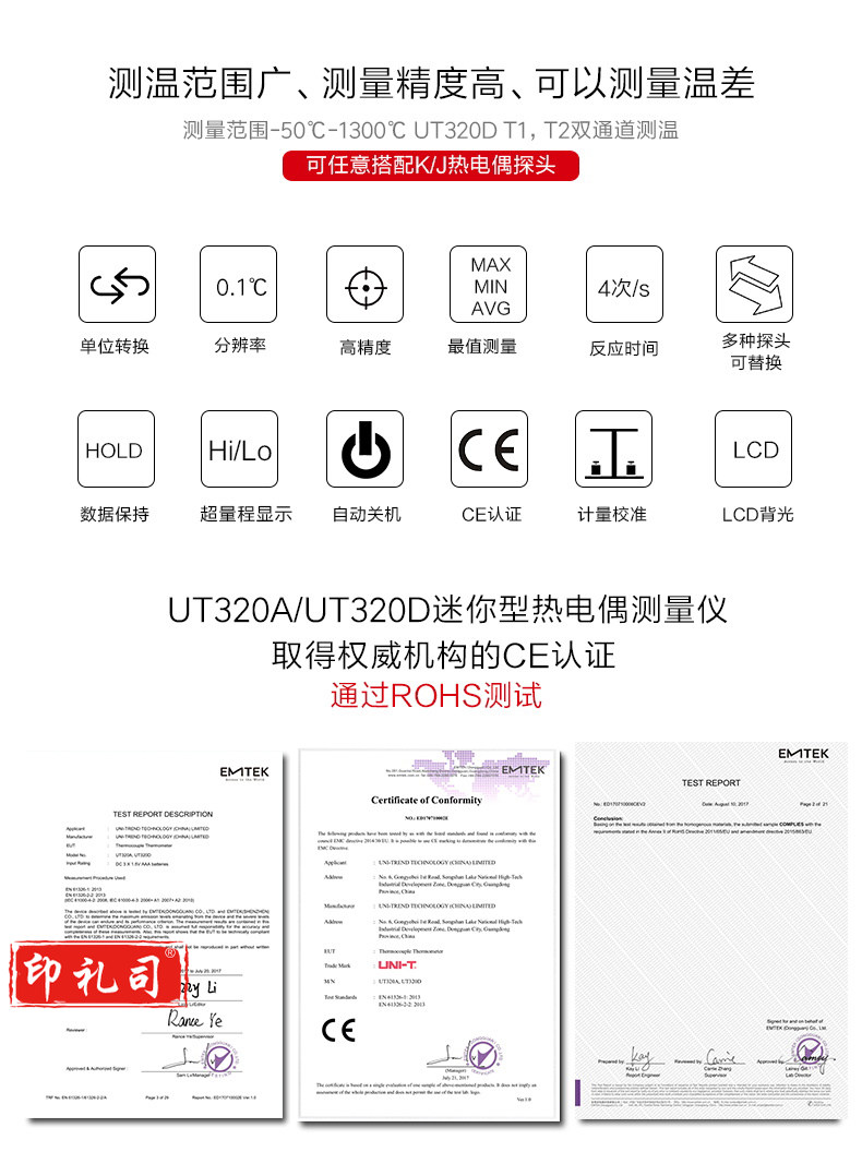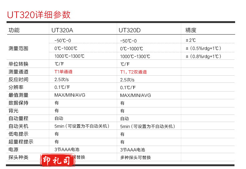 优利德(UNI-T) 数字温度仪 K/J双用热电偶迷你测温温度计 UT320A单路/UT320D双路