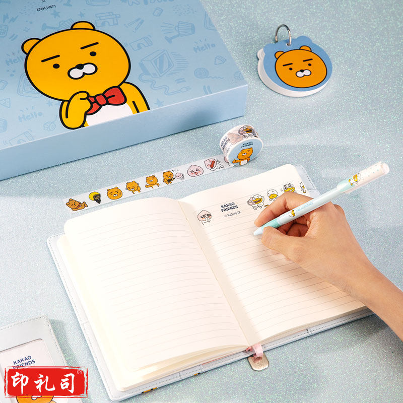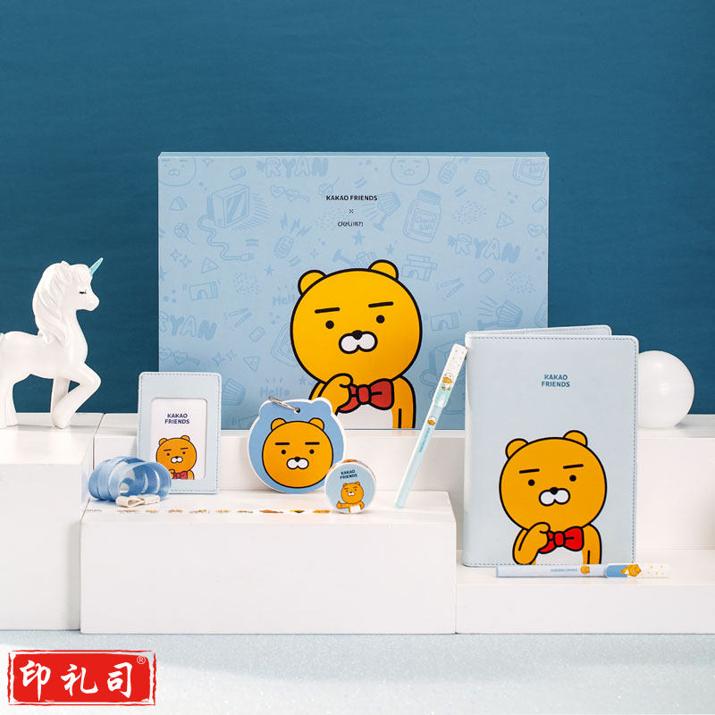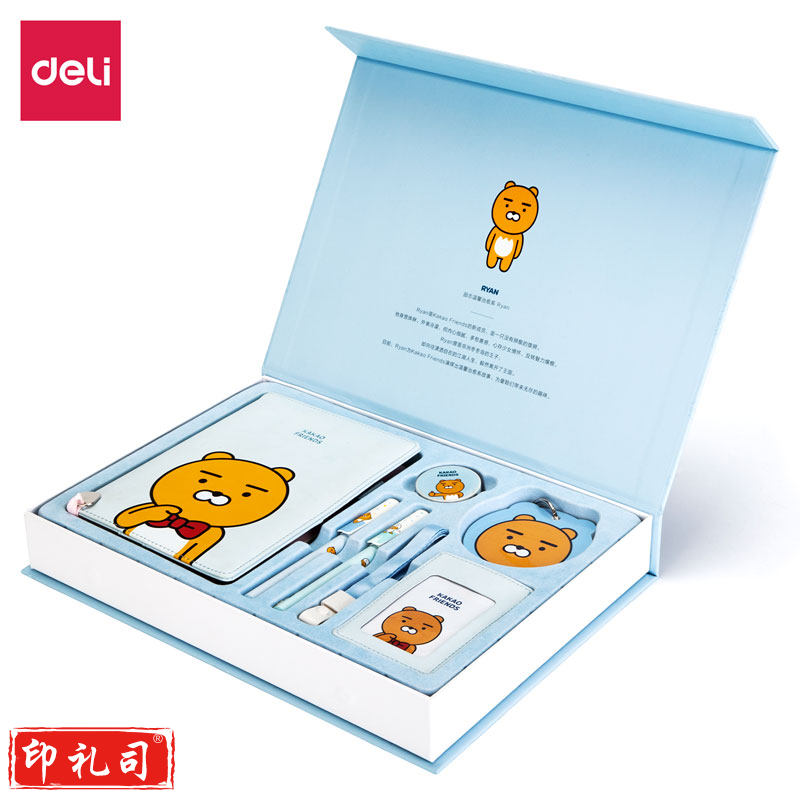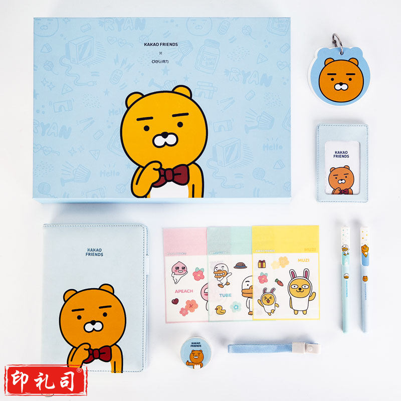 得力22253KAKAOFRIENDS皮面记事本套装-(蓝)(套)