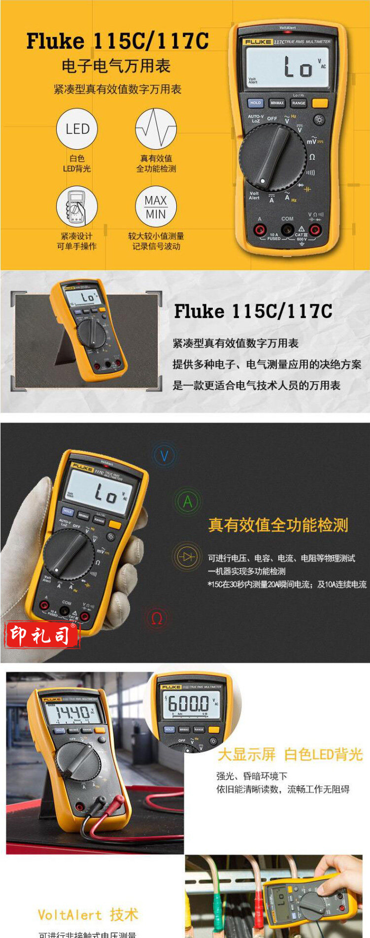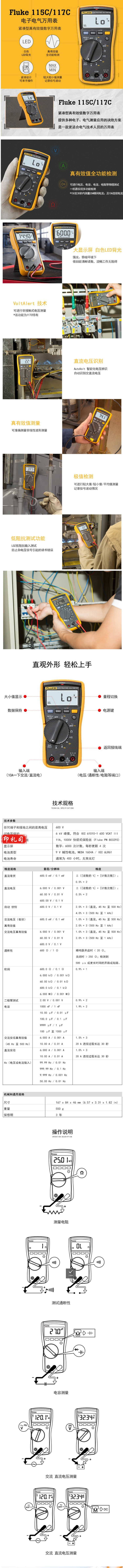 福禄克(Fluke) 紧凑型真有效值数显式数字万用表 117C
