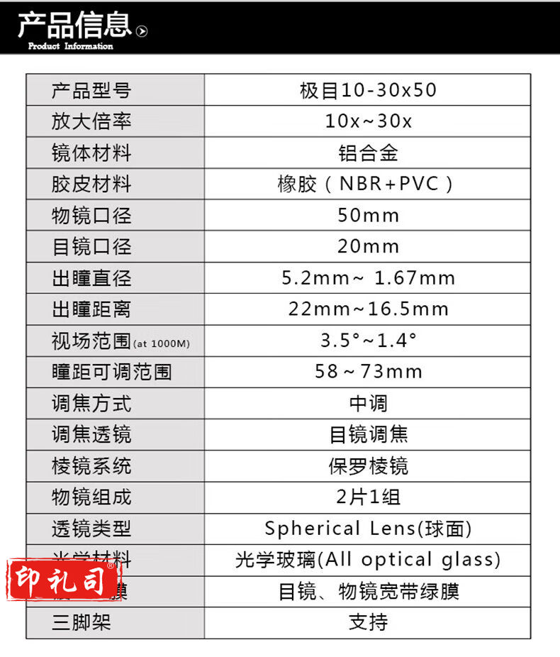 欧尼卡 极目 10-30x50 变倍高清双筒大口径保罗望远镜
