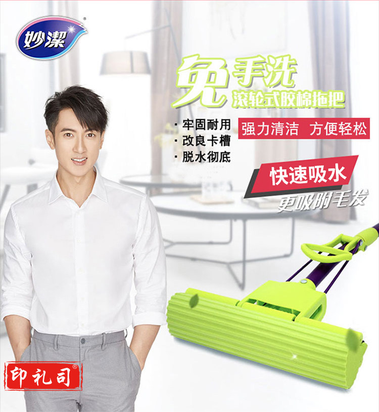 妙洁海绵拖把 懒人免手洗墩布吸水地拖胶棉拖布 共2个替换头