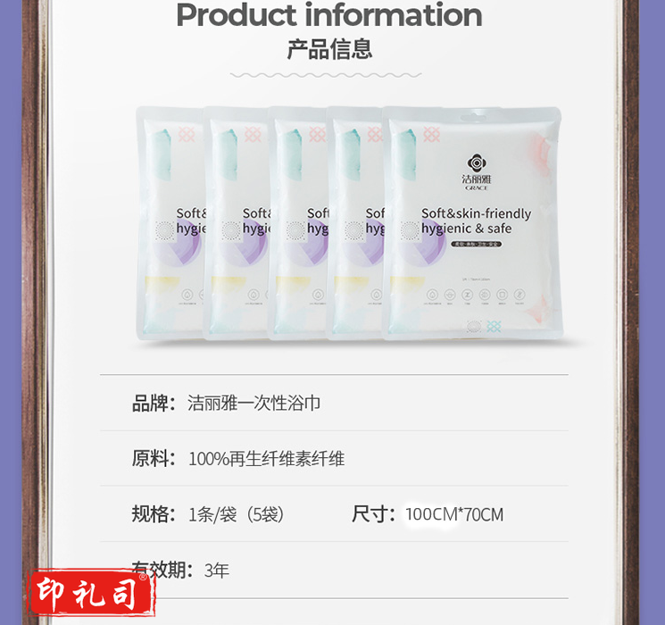 洁丽雅(Grace)一次性浴巾棉柔巾珍珠纹旅行便携加厚浴巾70×100cm5包装