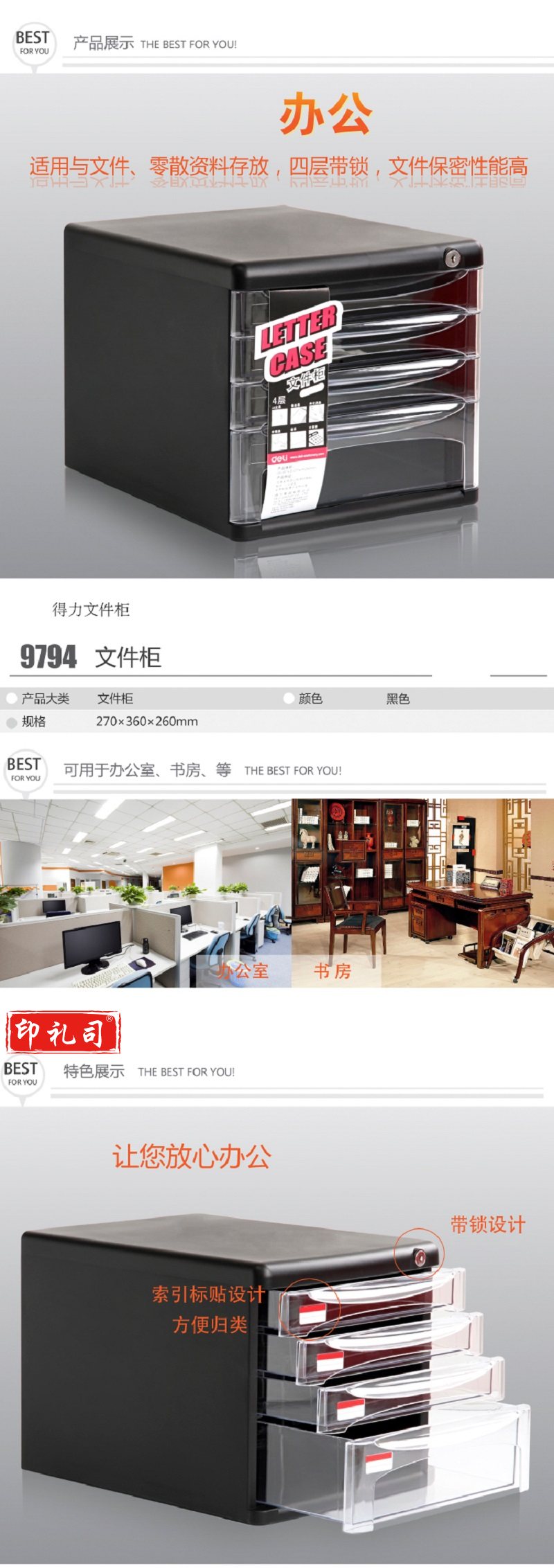 得力9794四层文件(黑)(只)
