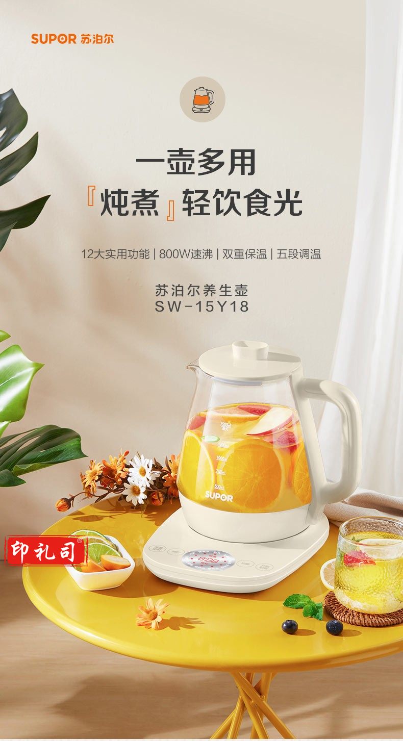 苏泊尔SW-15Y18 多功能大容量养生壶电热水壶 1.5L