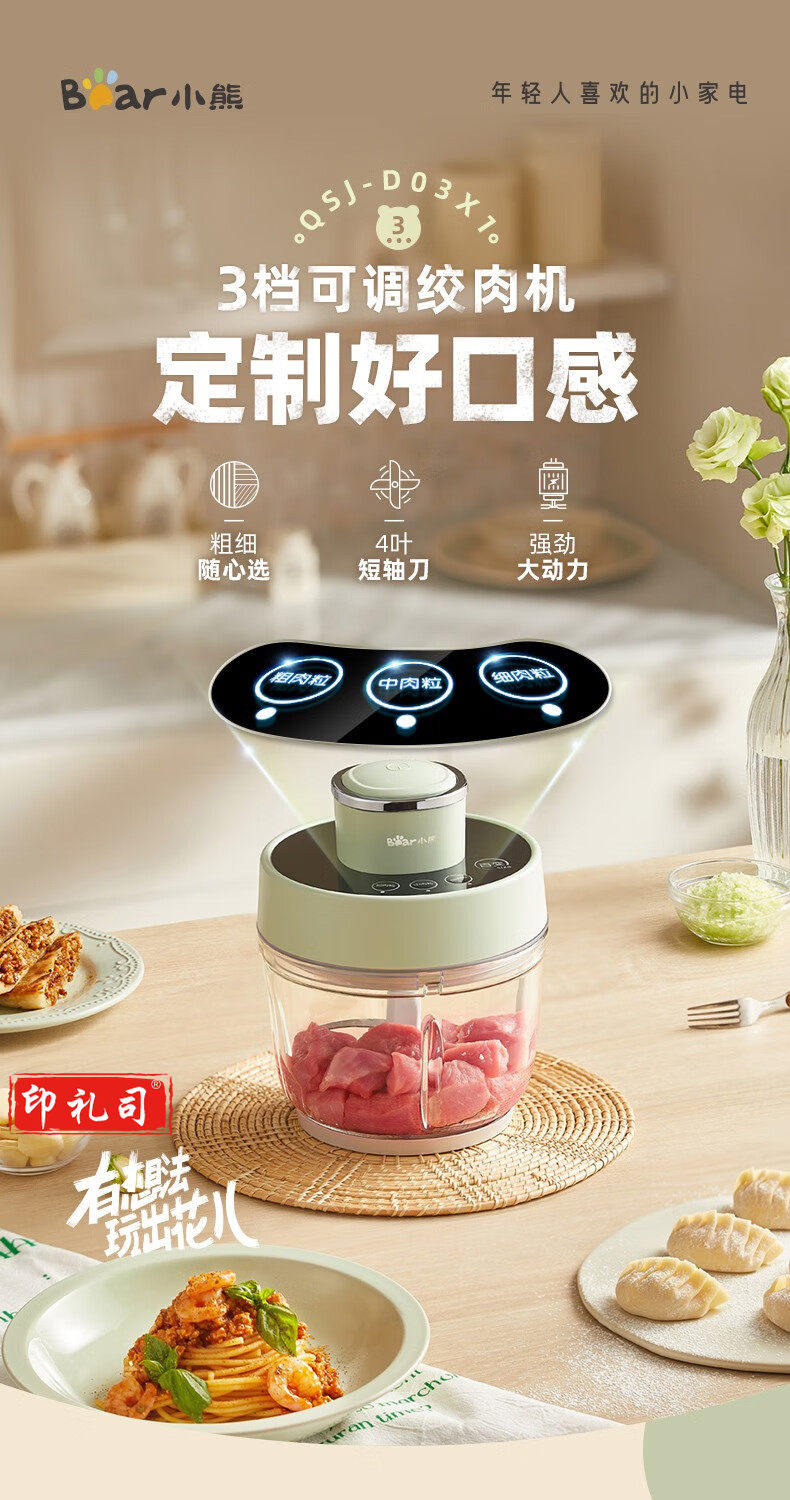 小熊(Bear)QSJ-D03X1绞肉机 电动绞馅机 不锈钢搅肉机