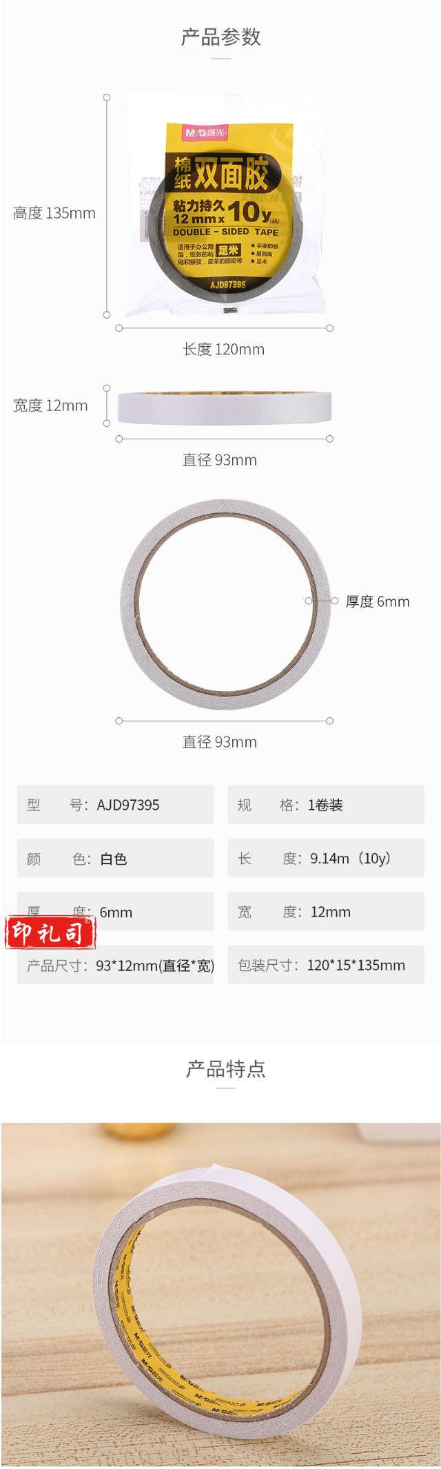 晨光 M&G 棉纸双面胶带 AJD97395 12mm*10y 24个/筒