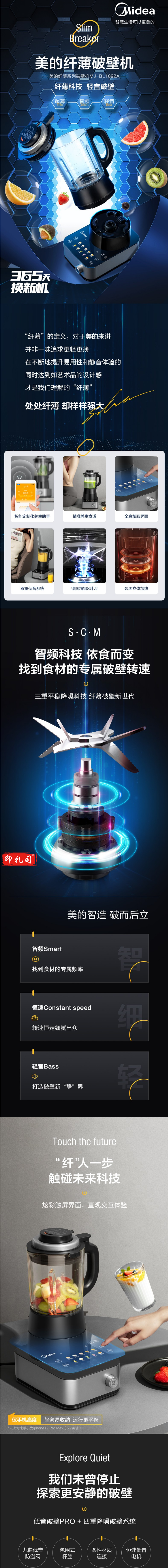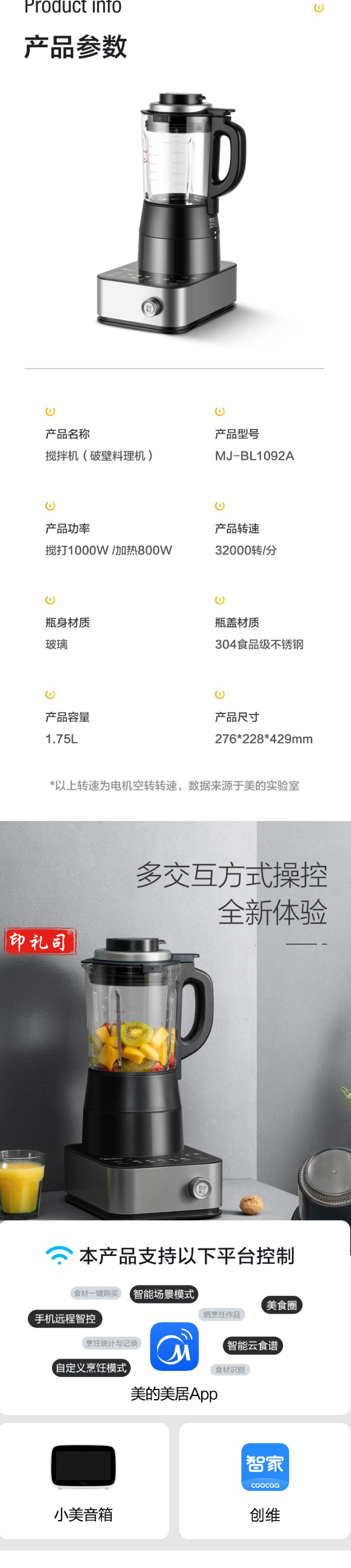 美的BL1092A 破壁机 智能多功能双重降噪wifi智能料理机
