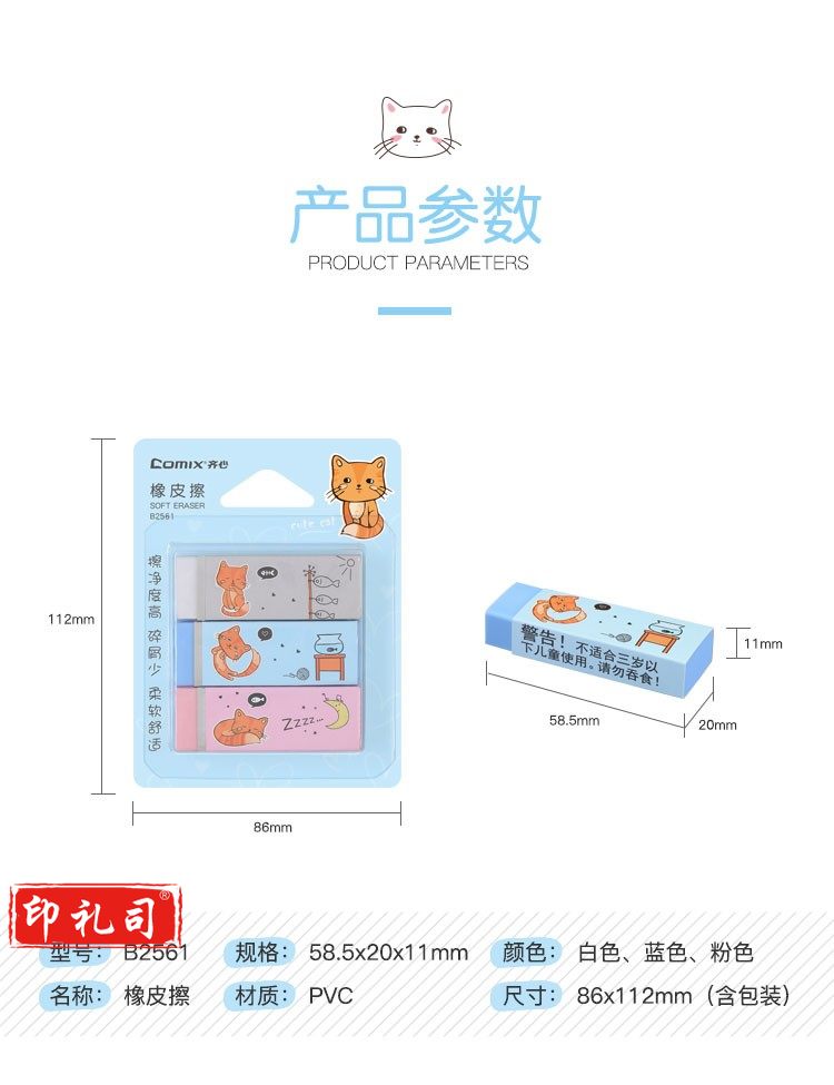 齐心B2561 彩色橡皮擦 少屑清理 3块/卡