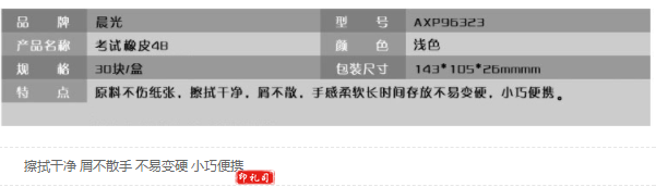晨光(M&G)文具4B小号学生考试美术绘图橡皮擦 30块装AXP96323