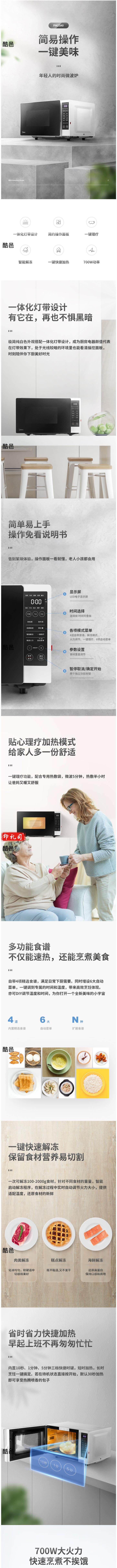 美的(Midea)PM23A0 23升快捷微波炉 智能解冻一键断电 LED显示屏 隐藏灯带 电子除味