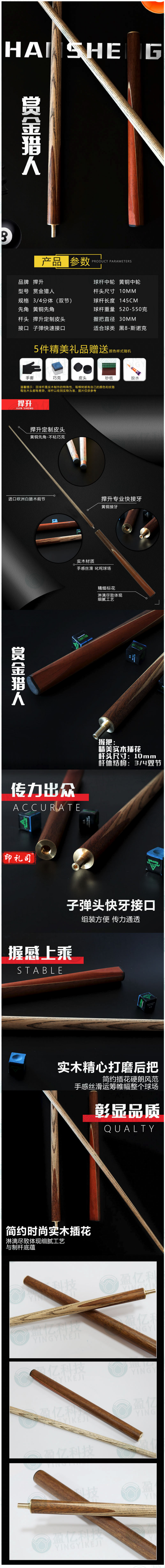 捍升HS-020 台球杆 10MM斯诺克黑8桌球英式小头黑八桌球杆小头球房公杆 3/4双节杆 赏金猎人