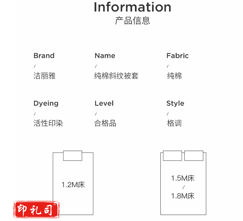 洁丽雅(Grace)全棉被套双人被罩200*230cm蓝色格调 适用1.5/1.8/2米床
