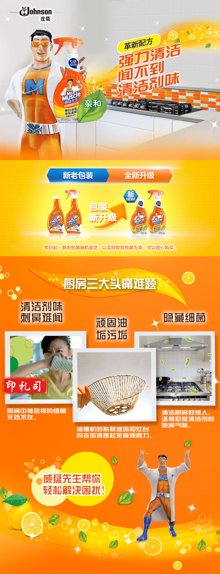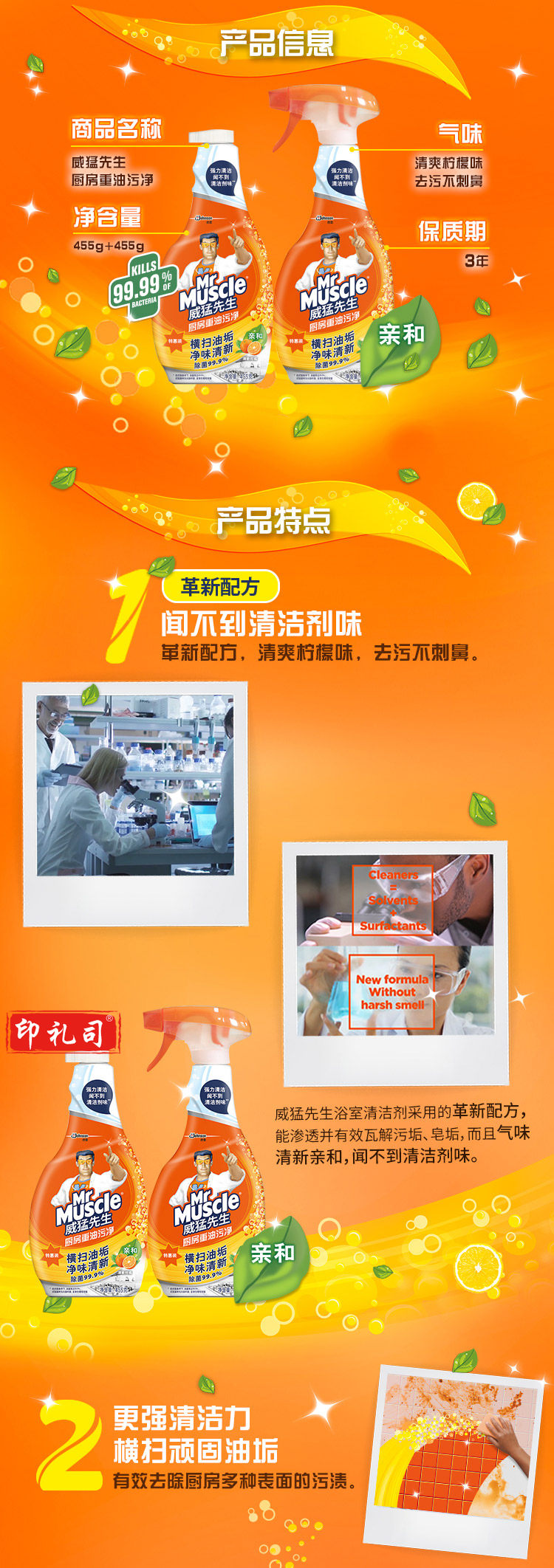 威猛先生 厨房重油污净 清新柑橘双包装455g+455g强效去油渍污垢 厨房清洁剂油烟机清洁剂
