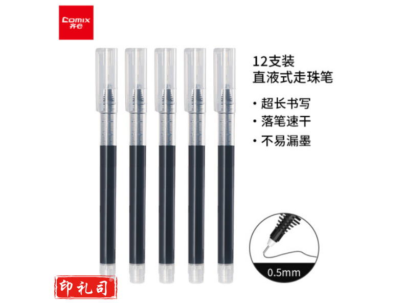 齐心(Comix) 全针管直液式走珠笔中性笔学生水笔 0.5mm 黑 12支装