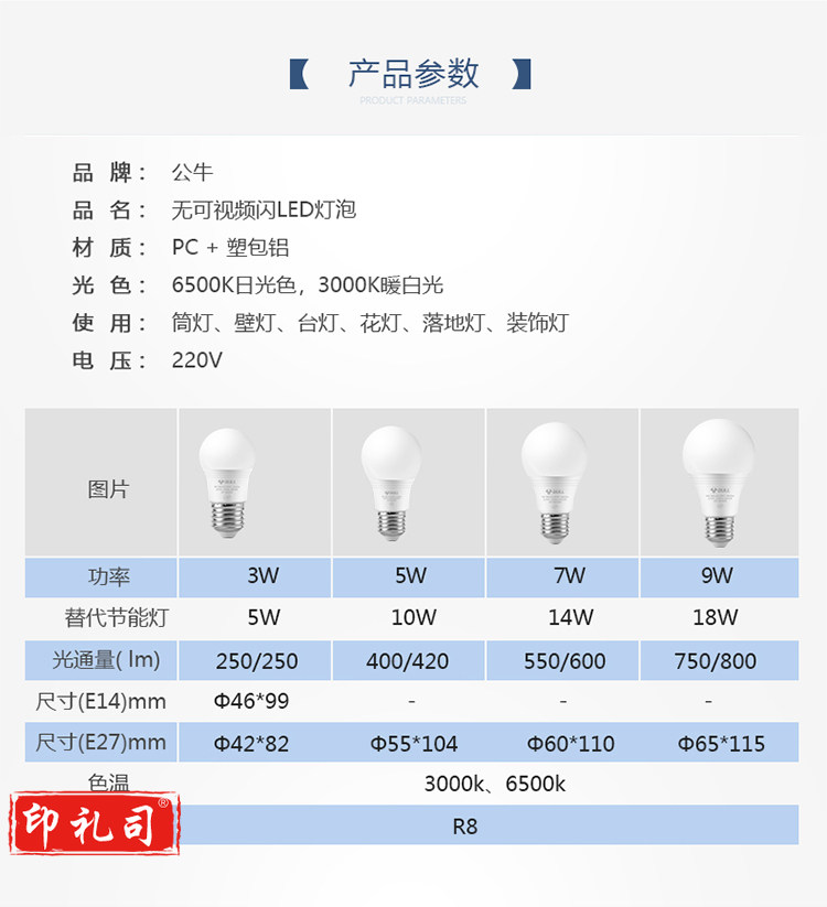 公牛 LED灯泡 节能球泡灯 E14螺口球泡灯 3W球泡黄光3000k