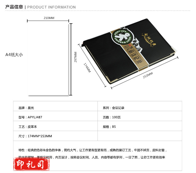 晨光 M&G 会议记录皮本 APYLK487 A5 (黑色) 100页/本