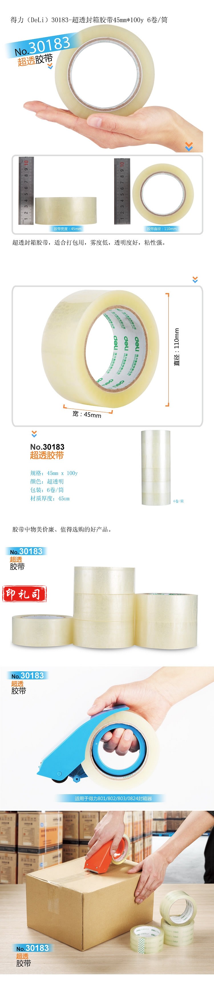 得力 30183 封箱胶带 45mmx100y (单位:筒)