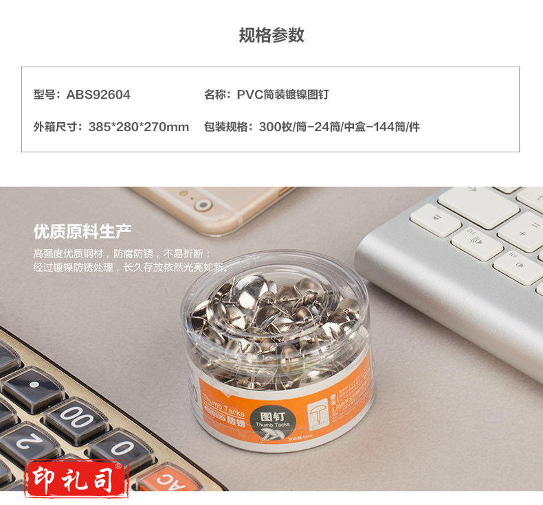 晨光 金属图钉 ABS92604 300枚/筒 10筒装