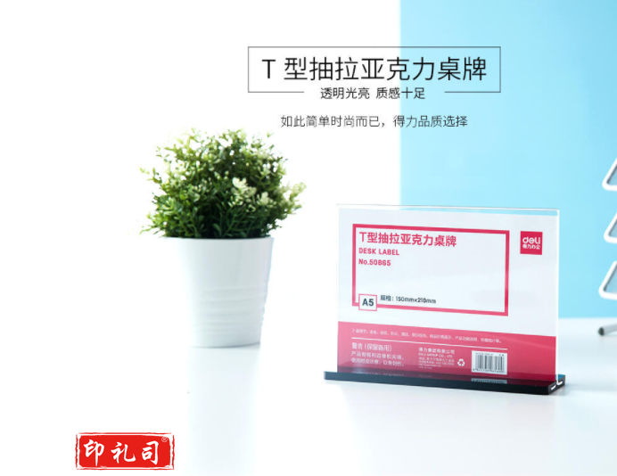 得力 50865 T型抽拉亚克力桌牌(透明)