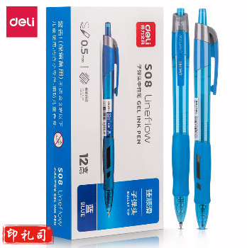 得力 S08 臻顺滑办公中性笔0.5弹簧头 蓝色