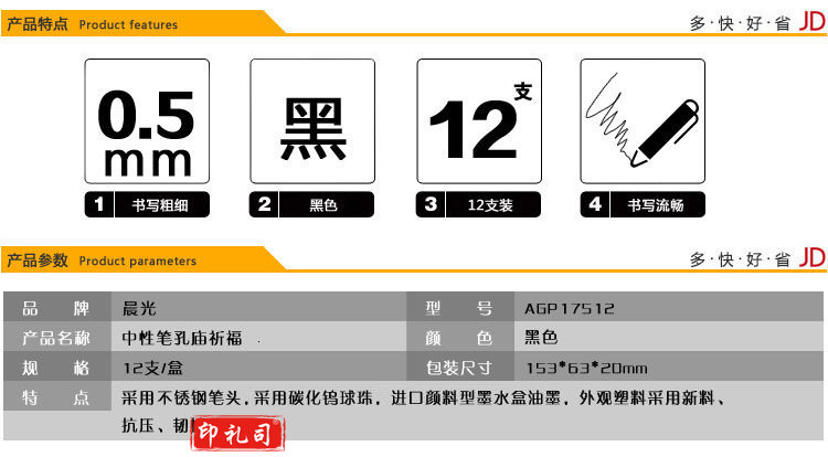 晨光(M&G)AGP17512 孔庙祈福中性笔 0.5MM 12支/盒
