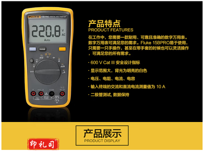 福禄克(FLUKE)F15B PRO 数字万用表 掌上型多用表 自动量程 带背光 仪器仪表F15B+