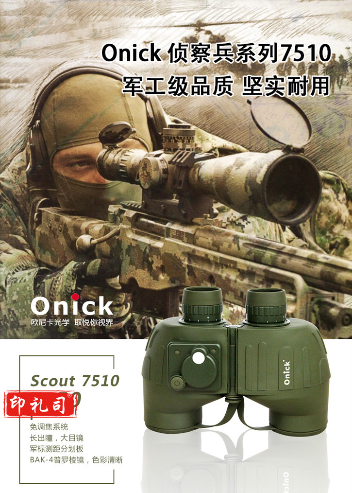 欧尼卡(Onick)侦察兵 7510 望远镜 内置测距分划板/机械罗盘侧方位