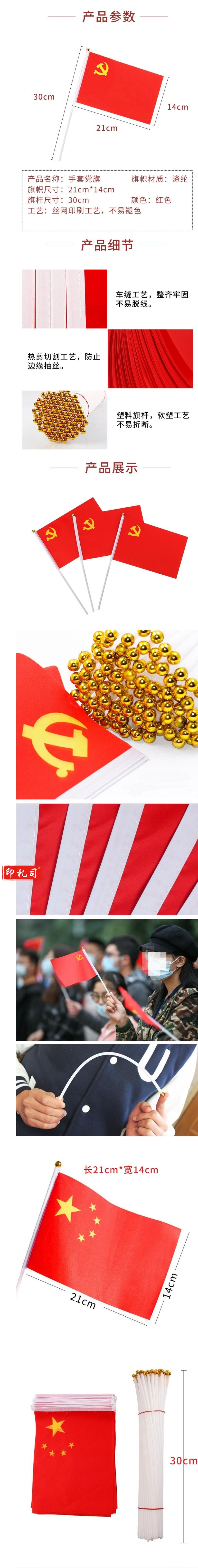 手摇小红旗旗 手摇党旗 旗面20*14CM 高30CM