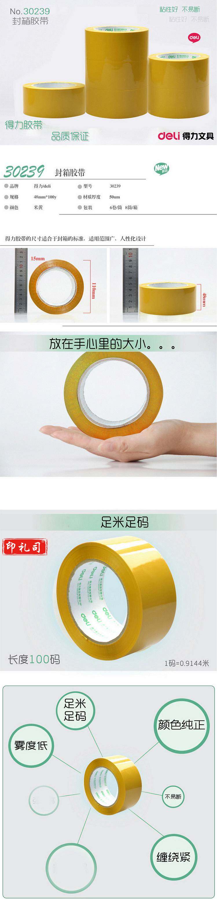 得力 30239 封箱胶带 48mmx100y (单位:筒) 米黄色