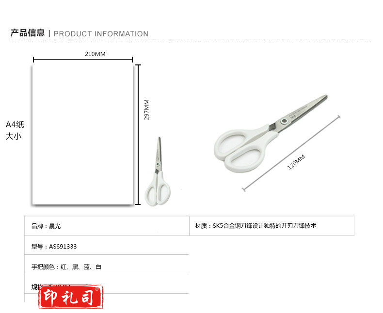 晨光(M&G)ASS91333 办公剪刀120mm彩色颜色随机