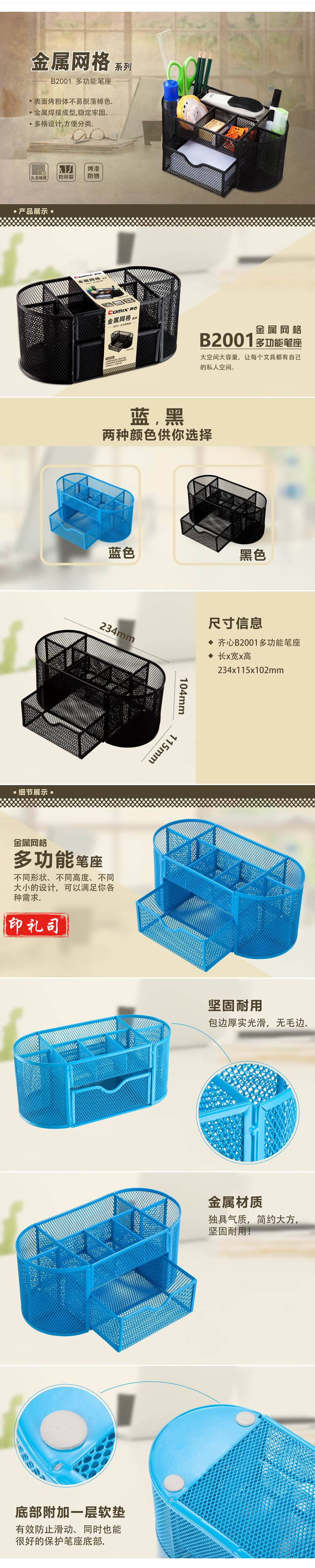 齐心(COMIX) B2001 多功能丝网笔筒
