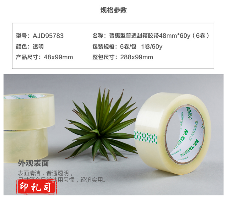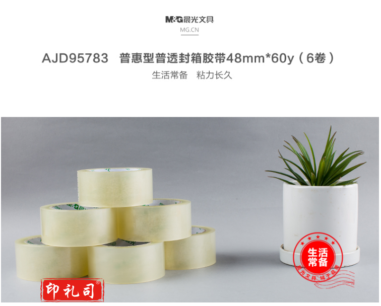 晨光/M&G AJD95783 普惠普透封箱胶带 48mm*60y 6卷装