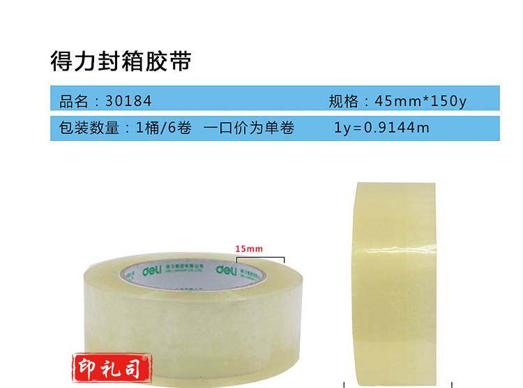 得力 30184 封箱胶带 45mmx150y (单位:筒) 透明