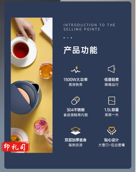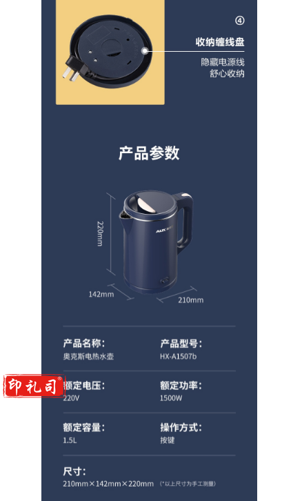 奥克斯(AUX)电热水壶烧水壶恒温水壶 1.5L大容量 双层防烫一键保温 304不锈钢内胆 HX-A1507B