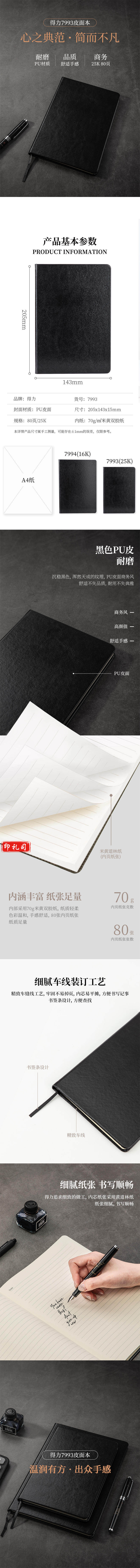 得力7993单包贴芯PU材质皮面本-25K-205mm*143mm/80张(黑)