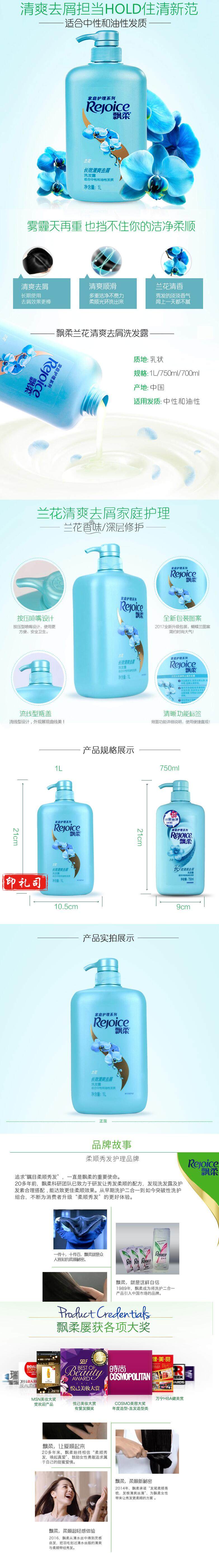 飘柔 1L 兰花清爽洗发露 发质顺滑