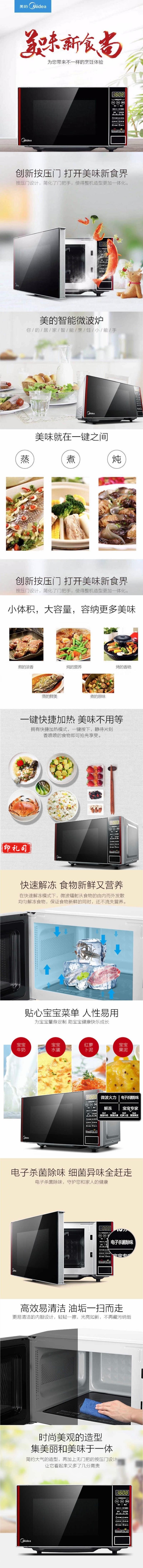 美的(Midea)微波炉 EM720KG4-NR 20L智能触摸解冻杀菌 黑色