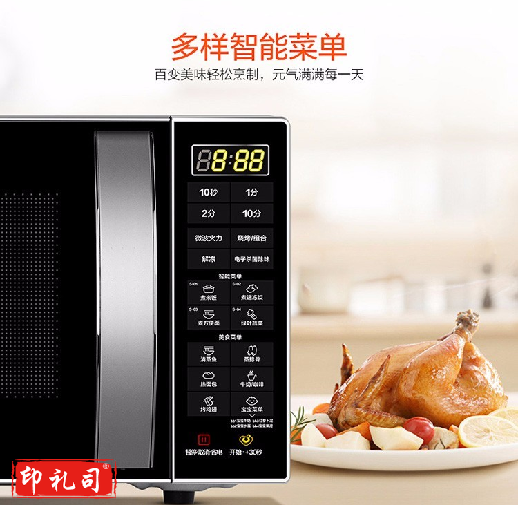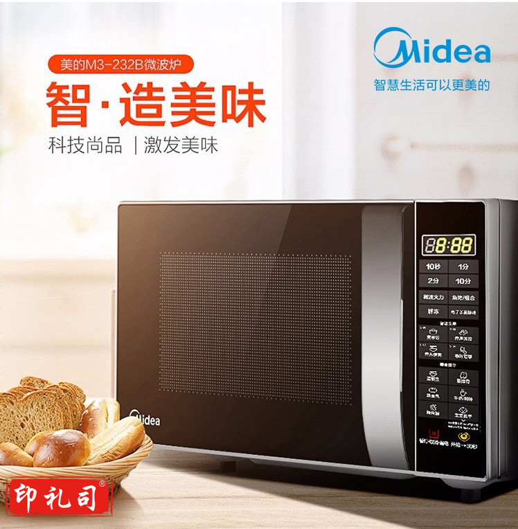 美的(Midea)M3-L232B 23L家用微波炉烤箱一体机 智能湿度感应 智能菜单 易清洁面板 电子除味 银黑搭配 大容量平板微波炉