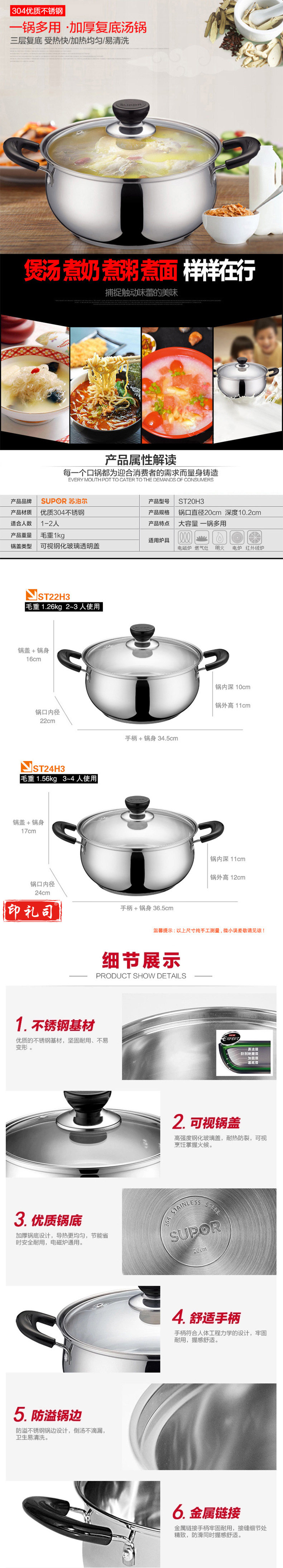 苏泊尔 ST20H3 好帮手不锈钢复底汤锅 200*200mm 不锈钢色