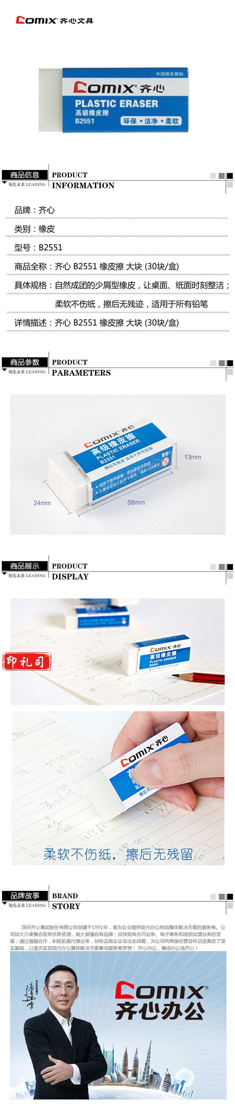 齐心 B2551 橡皮擦 大块(计价单位:块) (30块/盒)